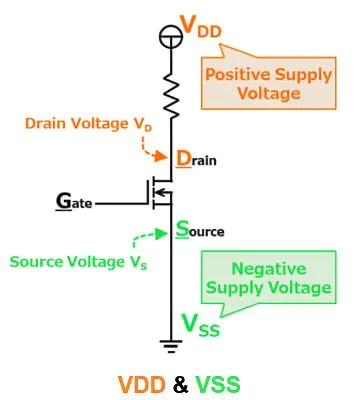 这里Vdd便作为正极,Vss作为负极。
